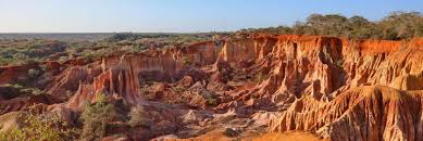 The Marafa Depression is locally referred to as Nyari, ‘the place broken by itself. Temperatures can get to scorching levels during the day, hence the alias ‘Hell’s Kitchen’. The naturally shaped stone columns and shifting colors of this unusual sandstone mini-canyon was once the location for many ancient sacred rituals. Local legend has it that there was once a town located in the depression. Now, worn away by wind, rain, and floods, the sandstone shows layer-cake-like colors of white, orange, deep crimson and pink. A visit to the gorge is particularly memorable at sunset when the hues are highlighted against the ribbed gullies of the sandstone.